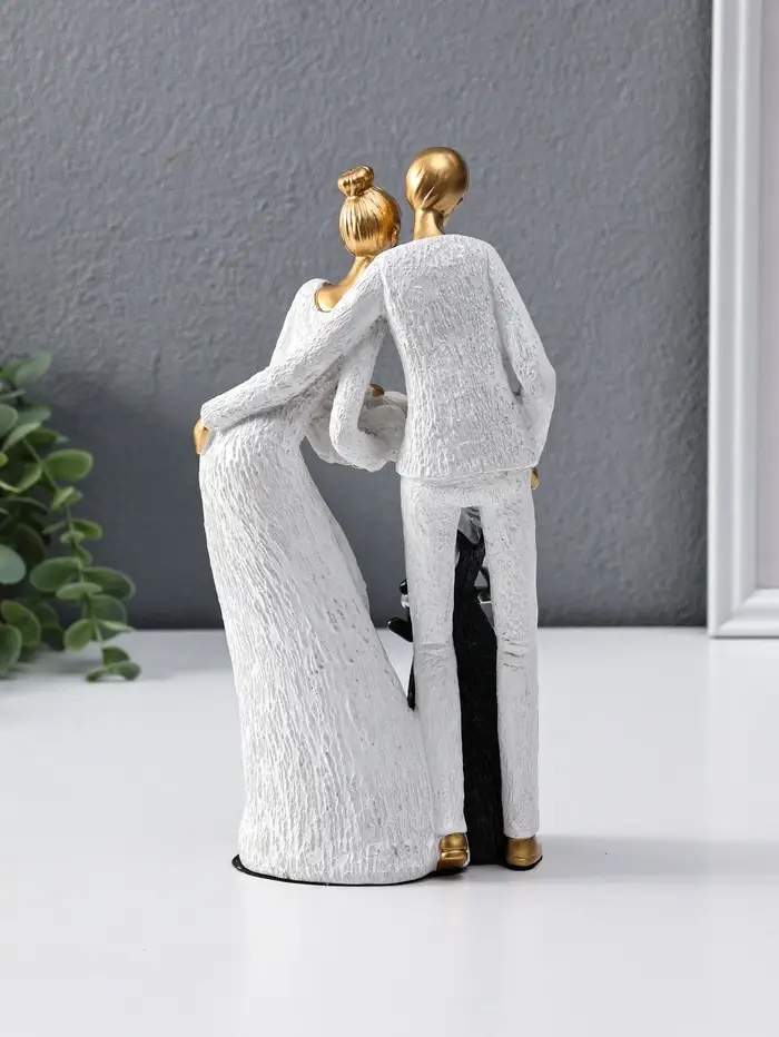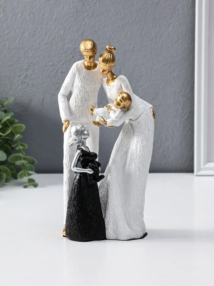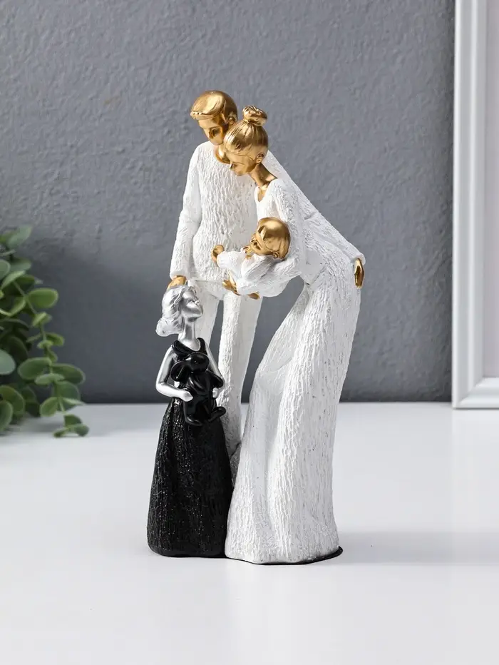 Сувенир полистоун "Родители с детьми" бело-золотой 8,5х13х25 см