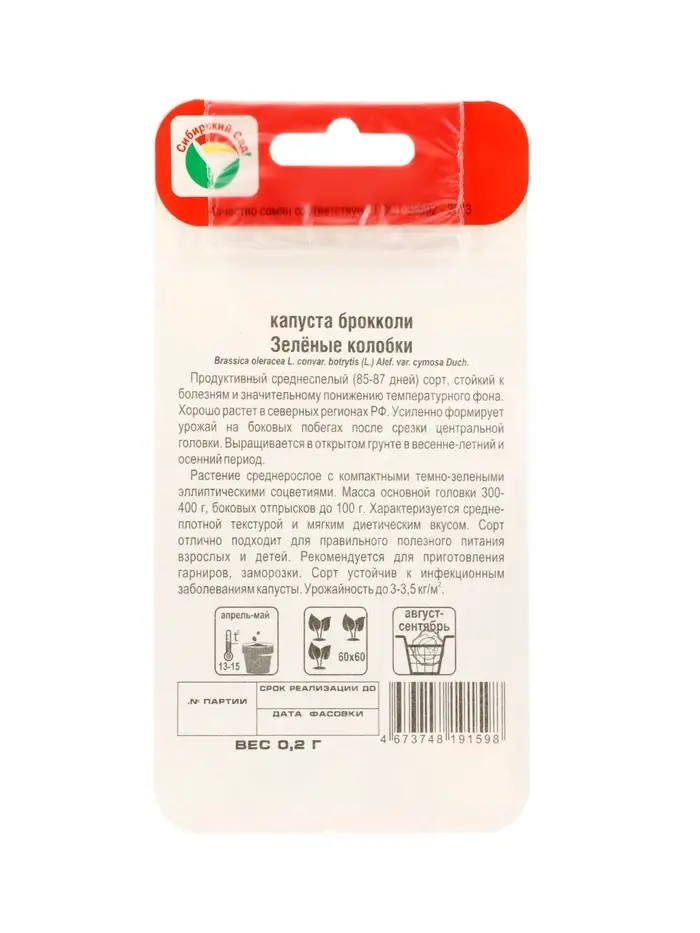 Семена Капуста брокколи «Зелёные колобки», 0.2 г, «Сибирский сад»