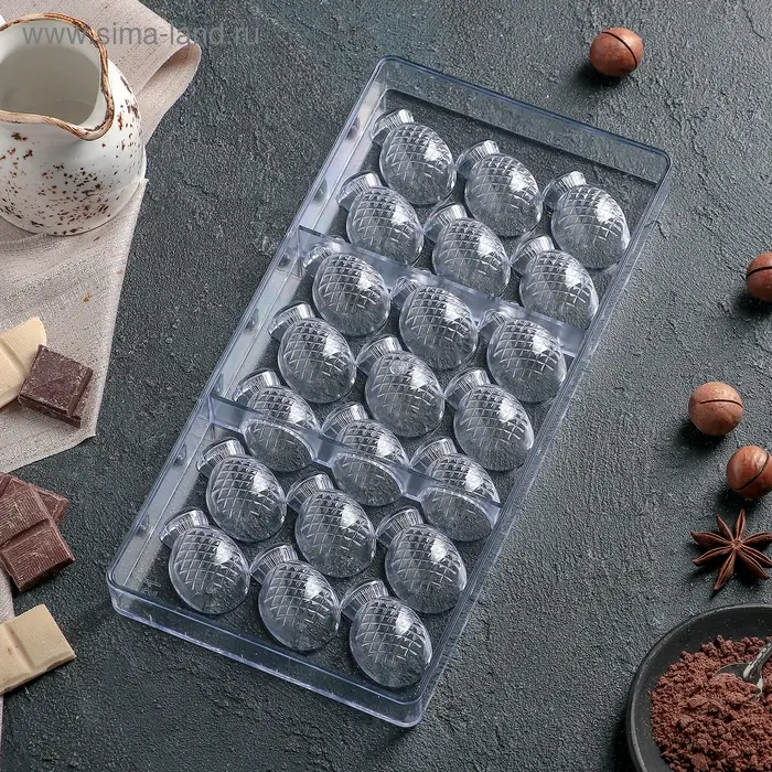 Форма для конфет и шоколада «Ананас», 28×14 см, 21 ячейка, цвет прозрачный