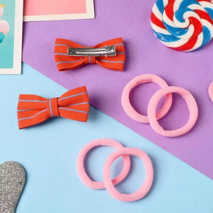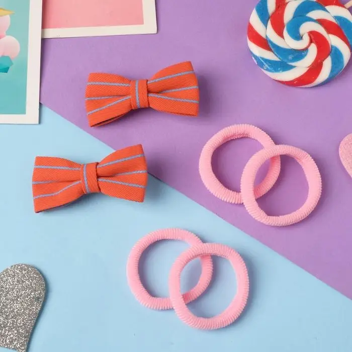 - Разнообразие элементов: В комплекте есть 4 резинки и 2 зажима, что позволяет создавать разные прически — от простых хвостиков до сложных укладок. Строгий дизайн полосок подходит для девочек любого возраста.