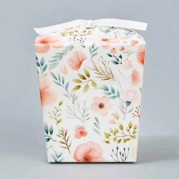 Коробка бонбоньерка, упаковка подарочная, «Акварельные цветы», 7.5 х 8 х 7.5 см