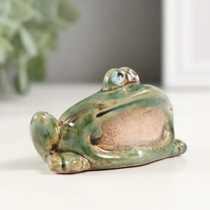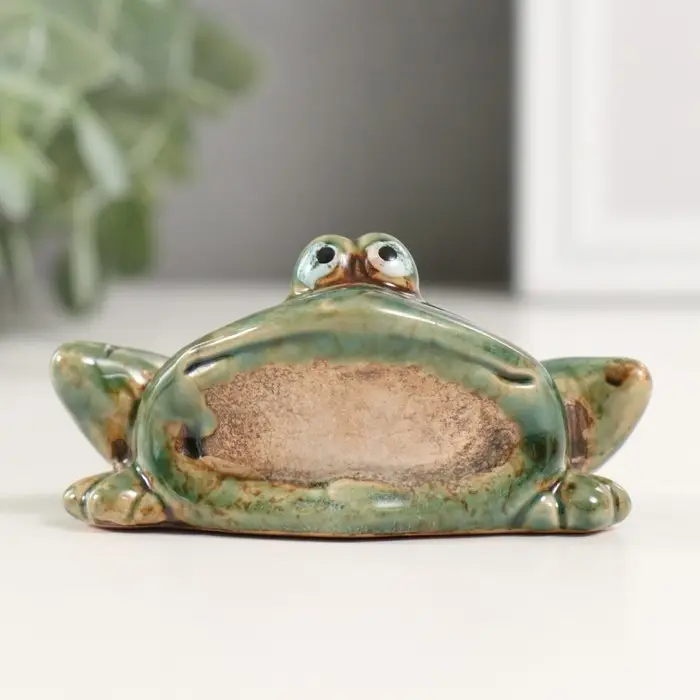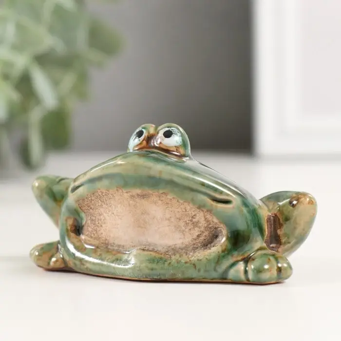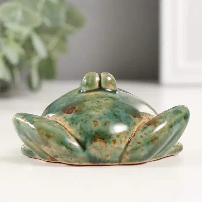 Сувенир керамика "Зеленая лягушка со сложенными лапками" 4,6х9х5,6 см