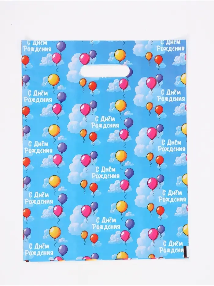 Подарочный пакет, полиэтиленовый, с вырубной ручкой, «День рождения», 30 х 40 см