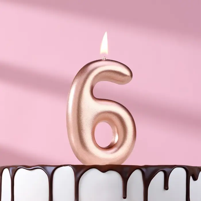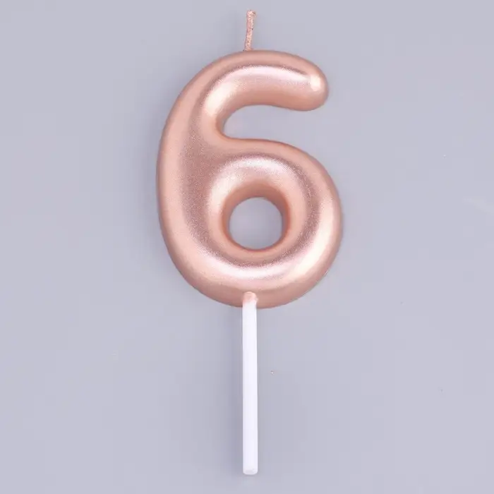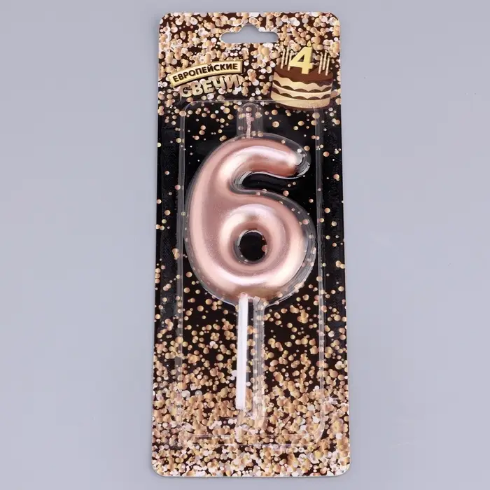 Свеча в торт «Европейская», цифра 6, 6 см, розовое золото