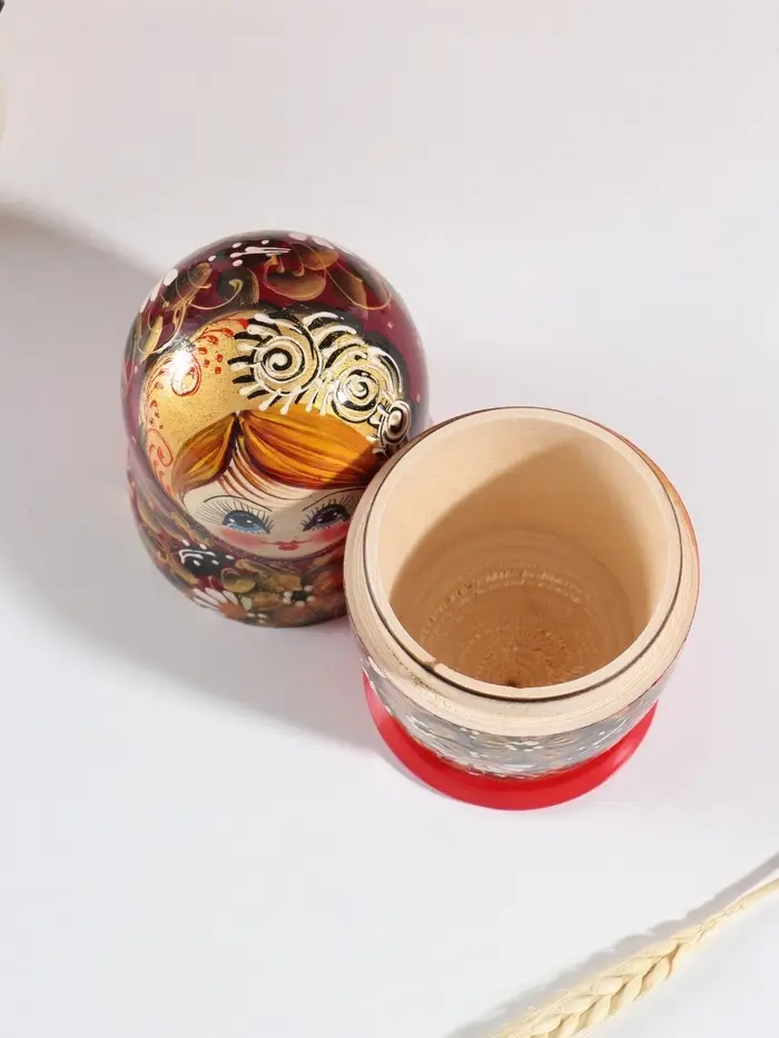 - Натуральные материалы: матрёшка изготовлена из дерева, что гарантирует её экологичность и долговечность.