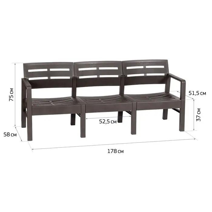 Диван садовый «Рейки», пластик, 58×178×75 см, трёхместный, мокко