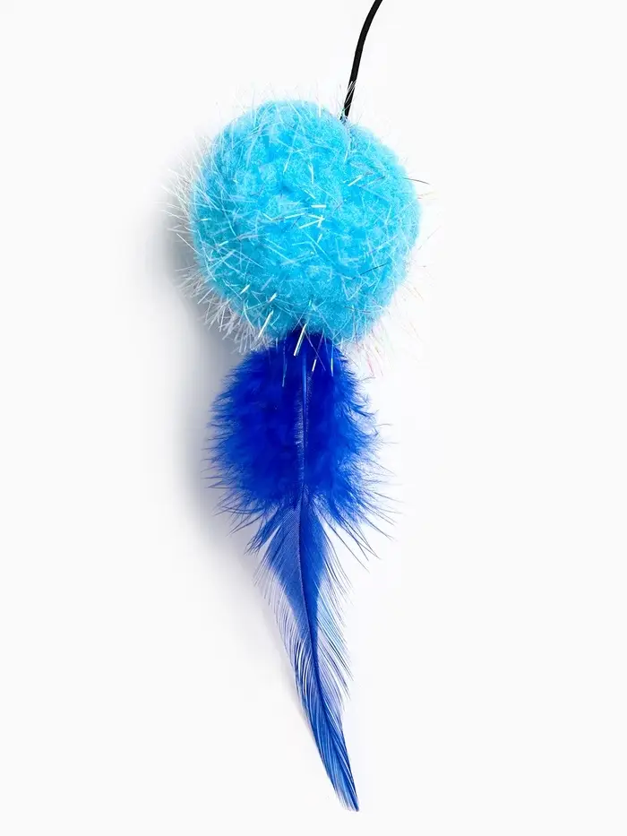 - Два типа приманки в одной игрушке: мячик создает непредсказуемую траекторию движения, а перья добавляют легкое покачивание и шуршание. Вместе они усиливают внимание кошки и продлевают игровую сессию.