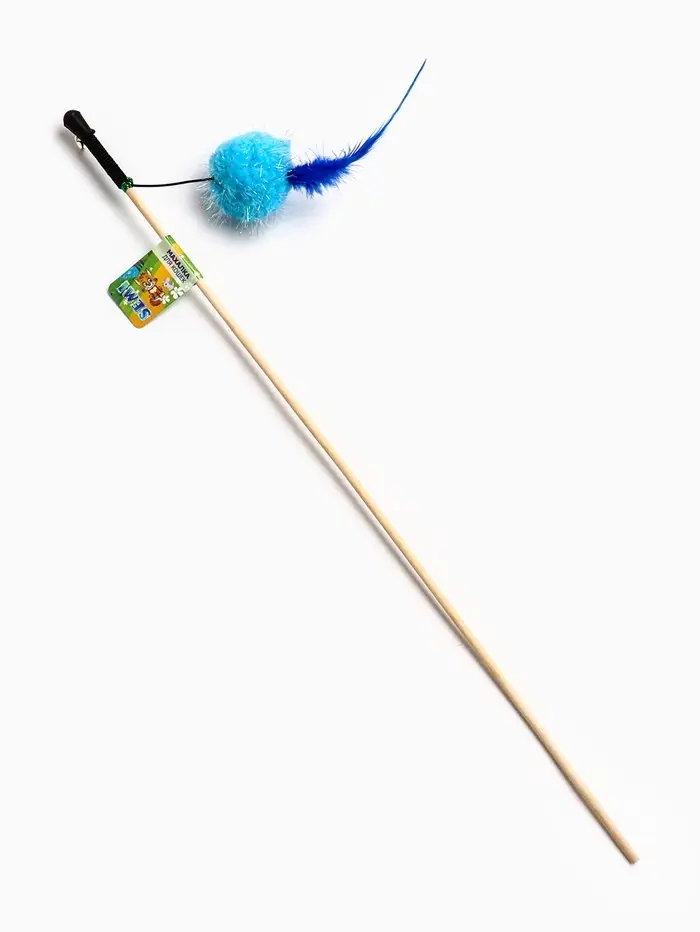 Дразнилка - удочка «Мячик с перьями». на деревянной палочке, цвет МИКС
