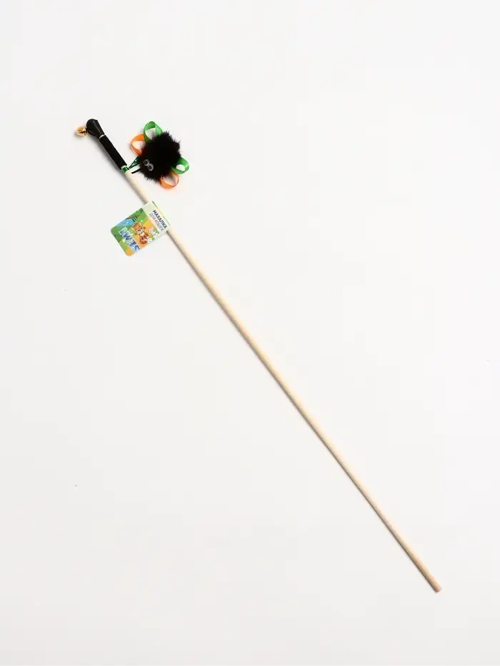 Дразнилка - удочка "Норковый паук" на деревянной палочке, микс цветов