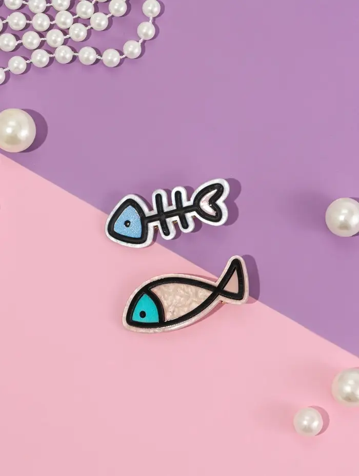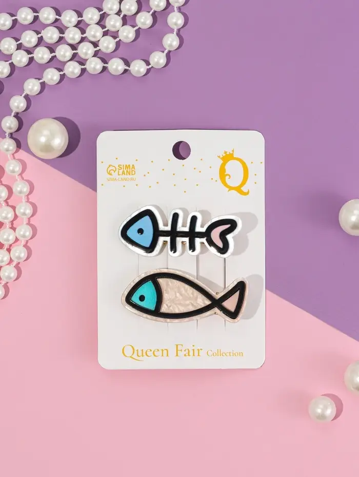 Зажим для волос "Мультизаврик" (набор 2 шт) рыба, 5,5 см