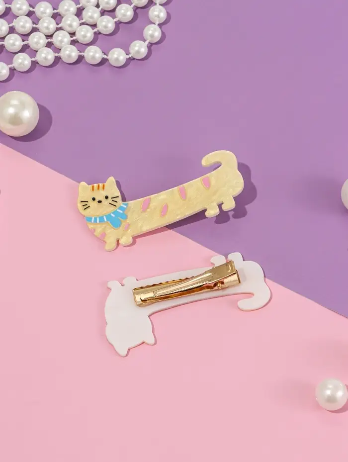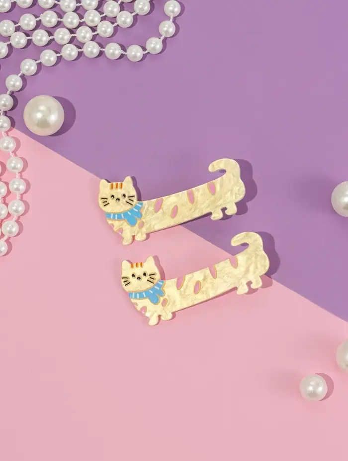 Зажим для волос "Мультизаврик" (набор 2 шт) кот в шарфе, 6,5 см