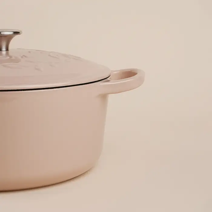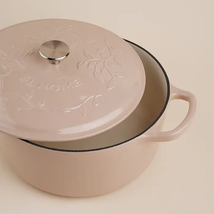 Кастрюля изготовлена из прочного чугуна, который славится своей способностью равномерно распределять и удерживать тепло. Эмалированное покрытие внутри и снаружи обеспечивает не только долговечность, но и легкость ухода — вы сможете мыть её в посудомоечной машине. Прочная чугунная крышка помогает сохранить аромат и сочность блюд.