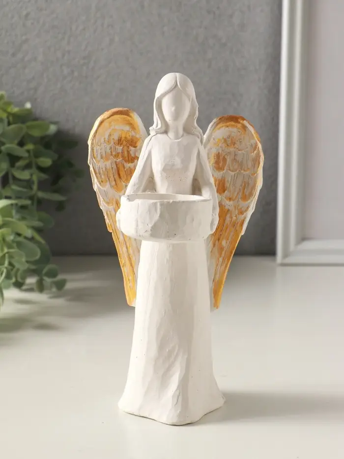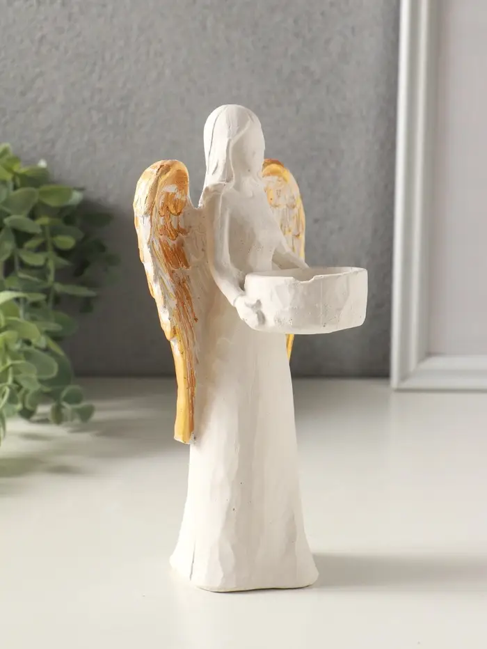 Этот белый гипсовый подсвечник для одной свечи станет элегантным акцентом в интерьере и создаст особое настроение. Его классическая форма и универсальная тематика делают его уместным в любой сезон — от романтического февраля до светлой Пасхи. Ангельский силуэт привносит в пространство ощущение спокойствия и чистоты.