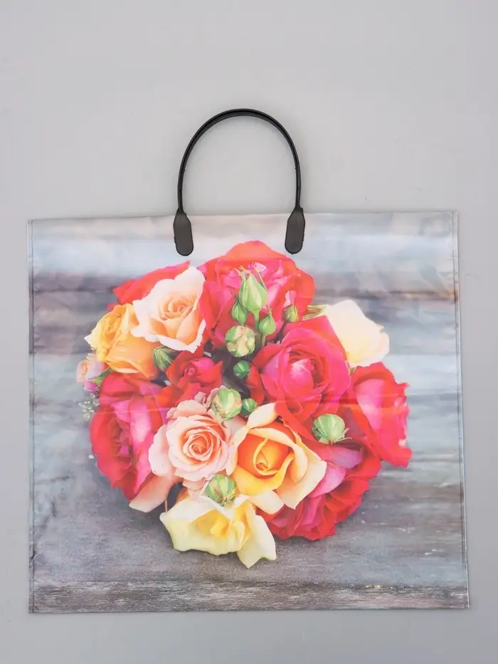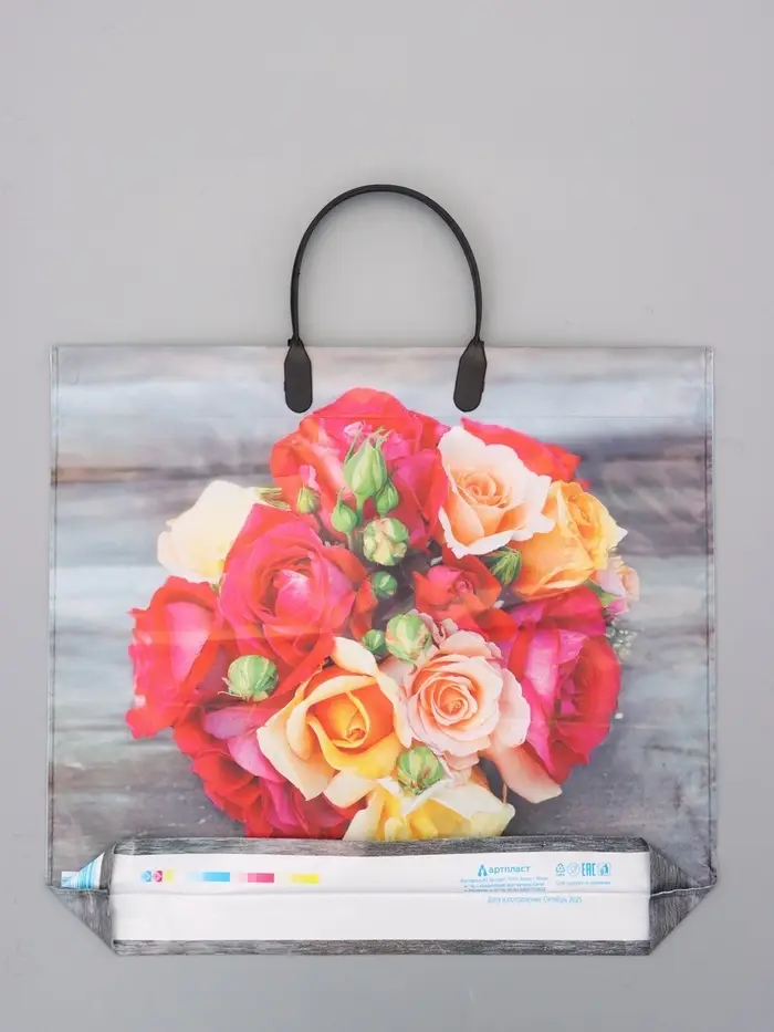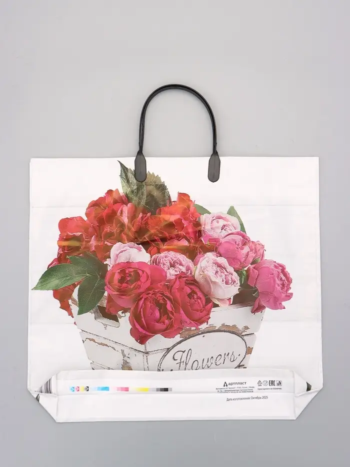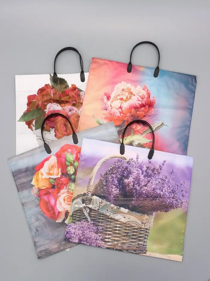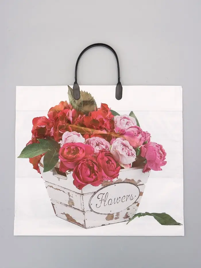 Пакет "Цветы ассорти", полиэтиленовый с пластиковой ручкой, 38 х 34 + 3 см, 90 мкм