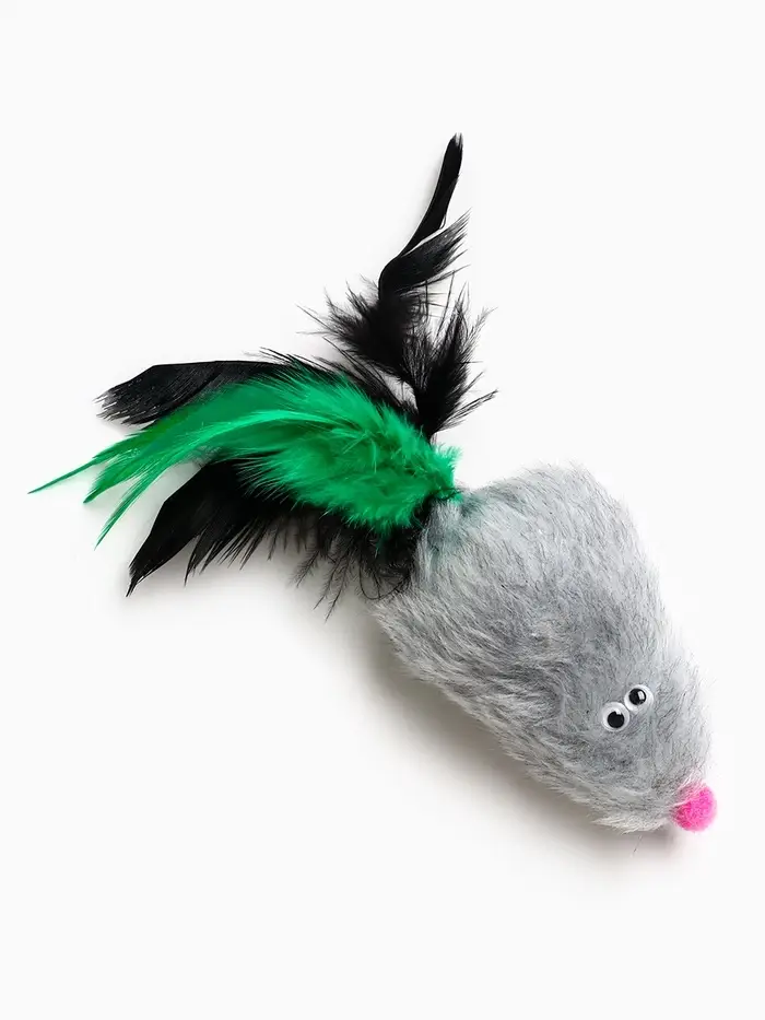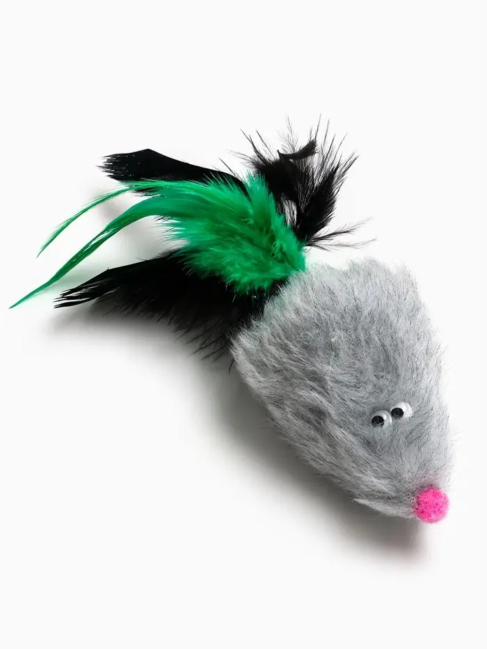 Игрушка длля кошек "Хвостатая мышь" 7 см, серая