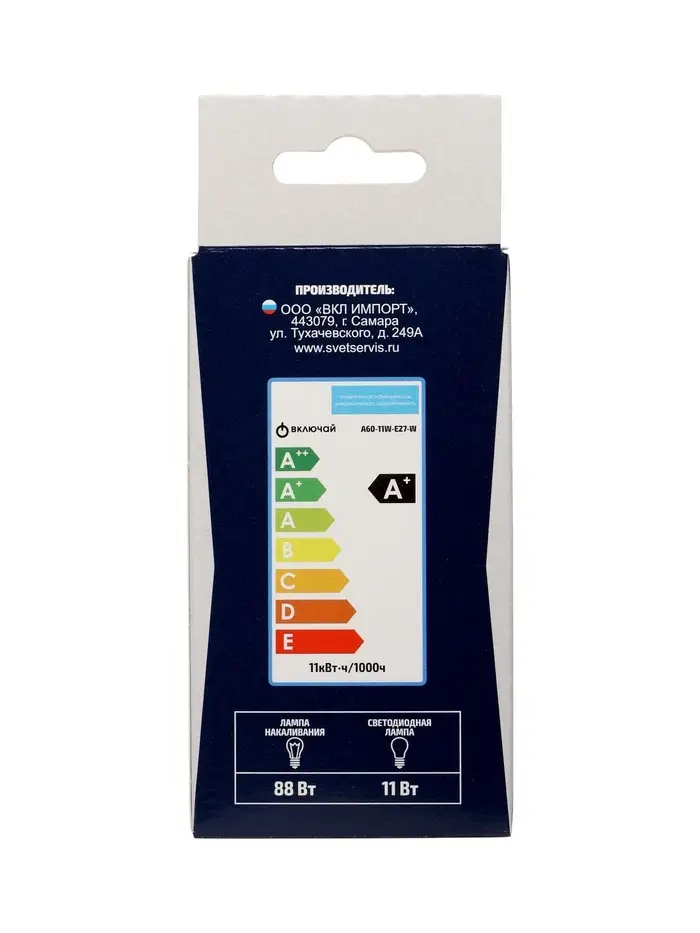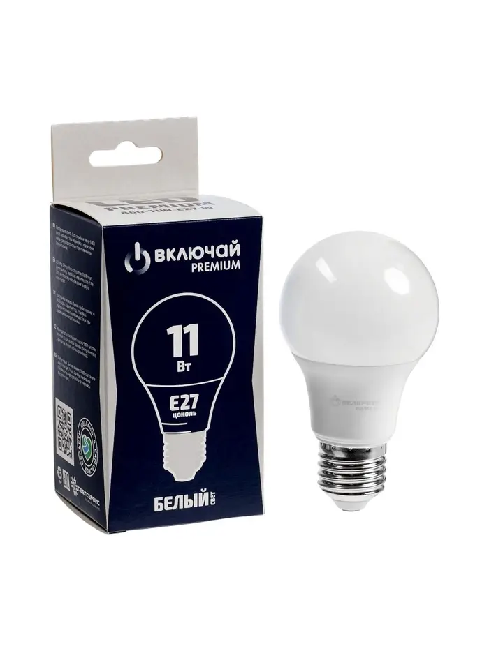 Лампа светодиодная Включай, А60, 11 Вт, E27, 1045 Лм, 4000K, IP20, свечение нейтральное белое, матов