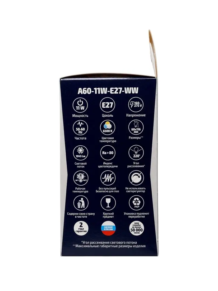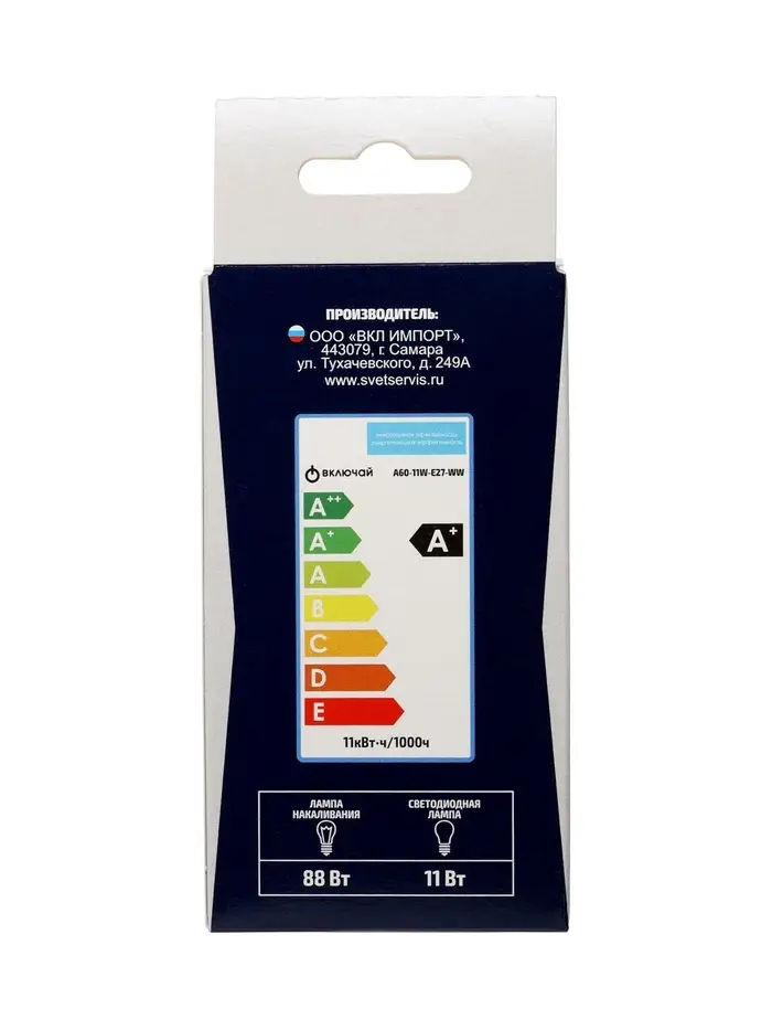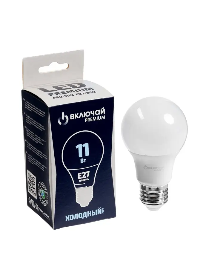 Лампа светодиодная Включай, А60, 11 Вт, E27, 1045 Лм, 6500K, IP20, свечение холодное белое, матовое