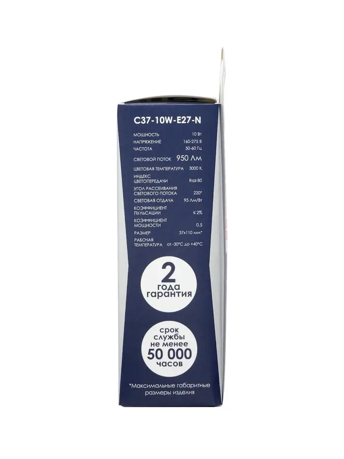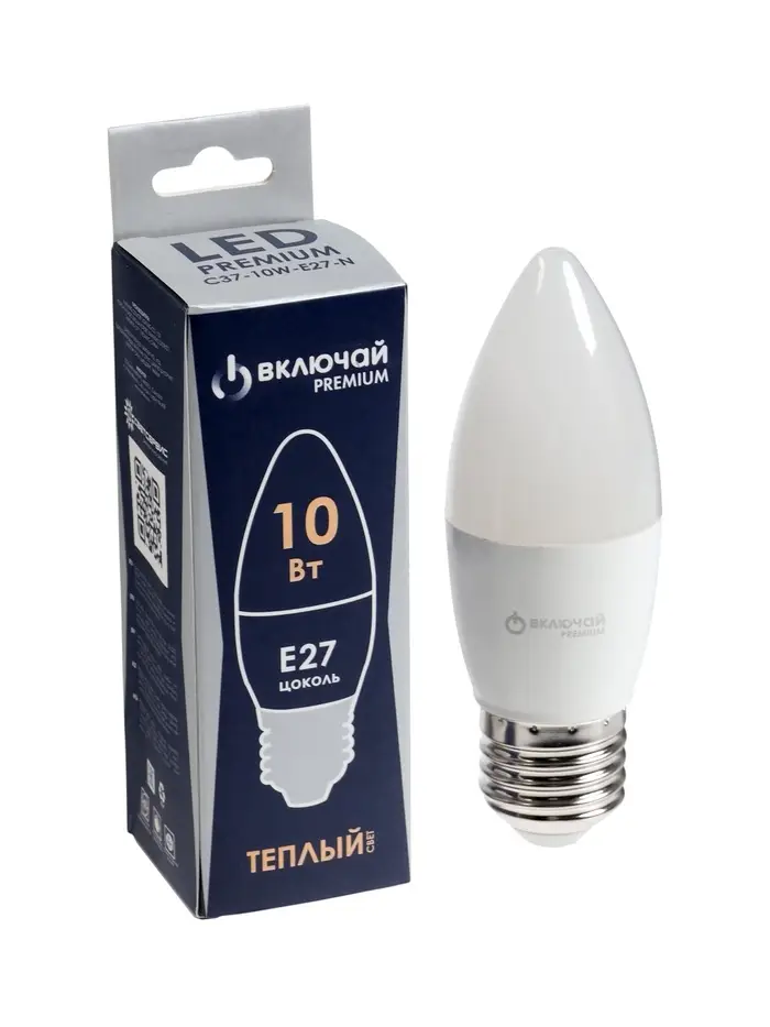 Лампа светодиодная Включай, С37, 10 Вт, E27, 950 Лм, 3000K, IP20, свечение тёплое белое, матовое сте