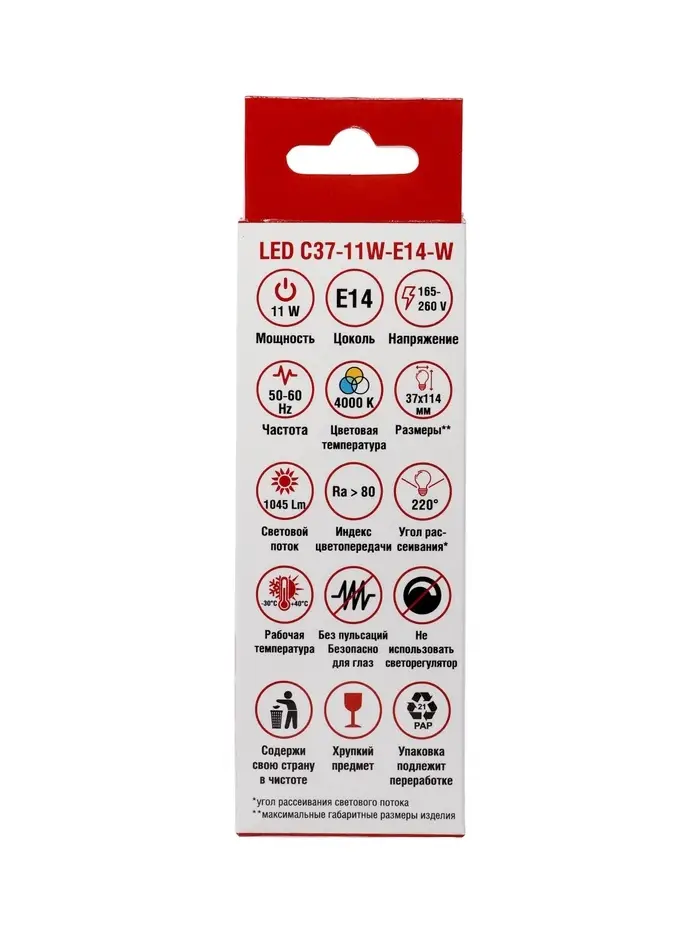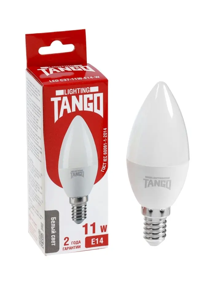 Лампа светодиодная TANGO, С37, 11 Вт, E14, 1045 Лм, 4000K, IP20, свечение нейтральное белое, матовое