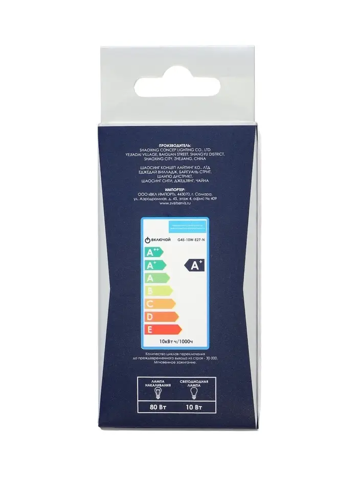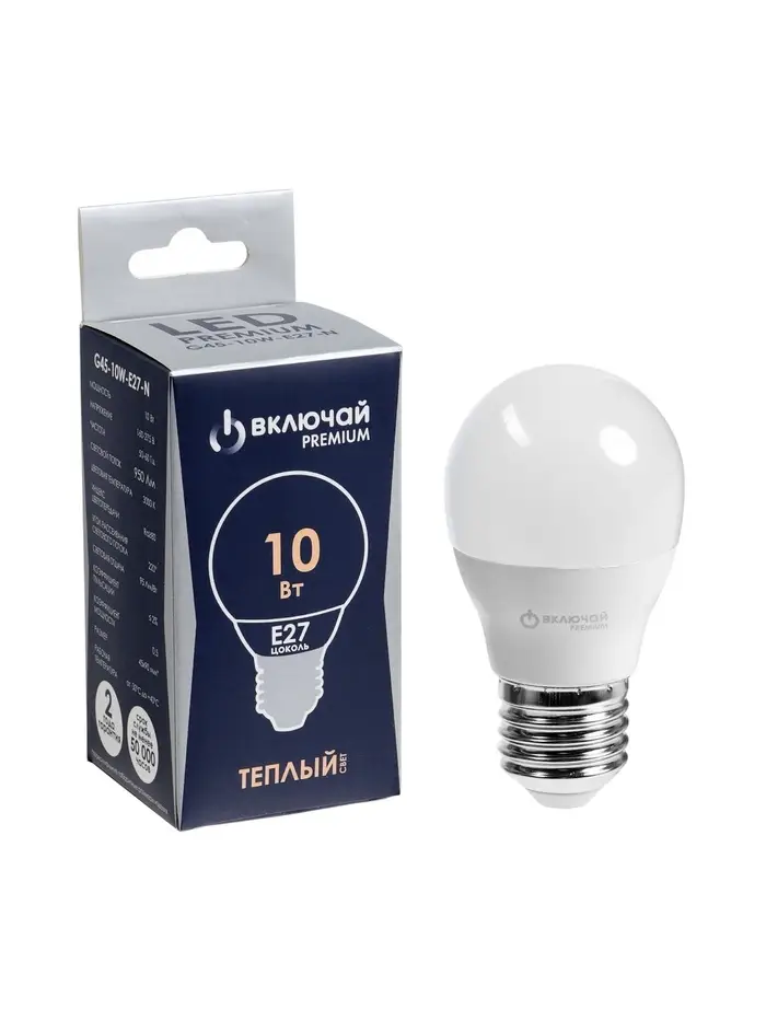 Лампа светодиодная Включай, G45, 10 Вт, E27, 950 Лм, 3000K, IP20, свечение тёплое белое, матовое сте