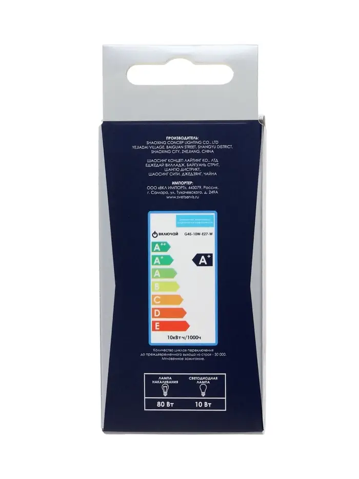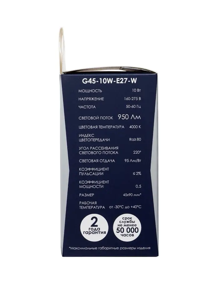 Лампа светодиодная Включай, G45, 10 Вт, E27, 950 Лм, 4000K, IP20, свечение нейтральное белое, матово
