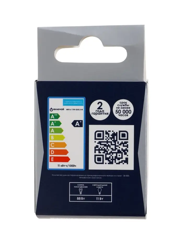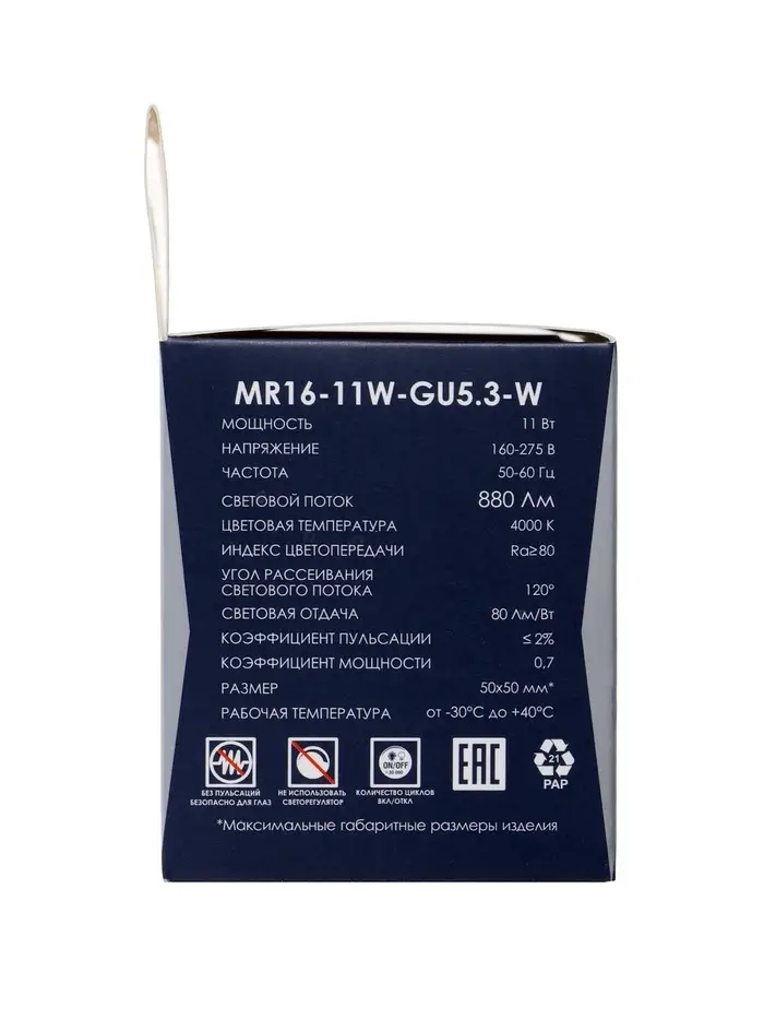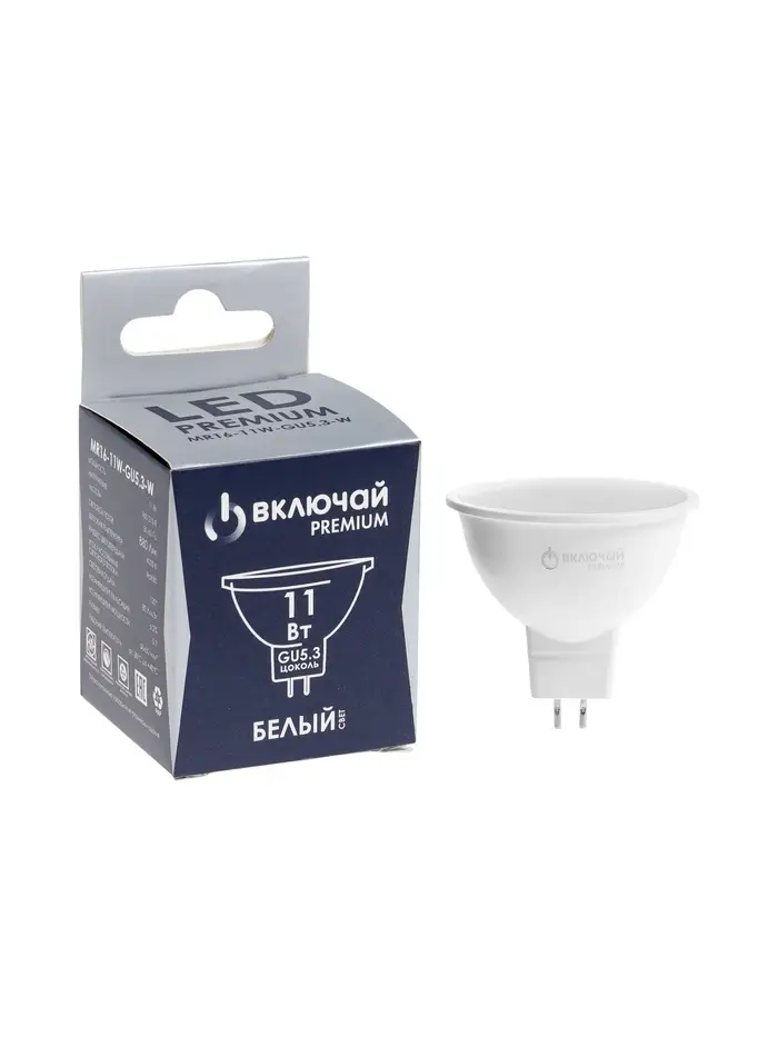 Лампа светодиодная Включай, MR16, 11 Вт, GU5.3, 880 Лм, 4000K, IP20, свечение нейтральное белое, мат