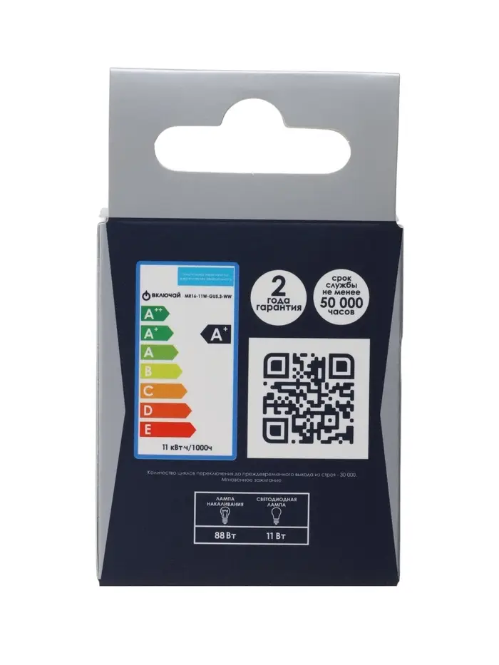 Лампа светодиодная Включай, MR16, 11 Вт, GU5.3, 880 Лм, 6500K, IP20, свечение холодное белое, матово