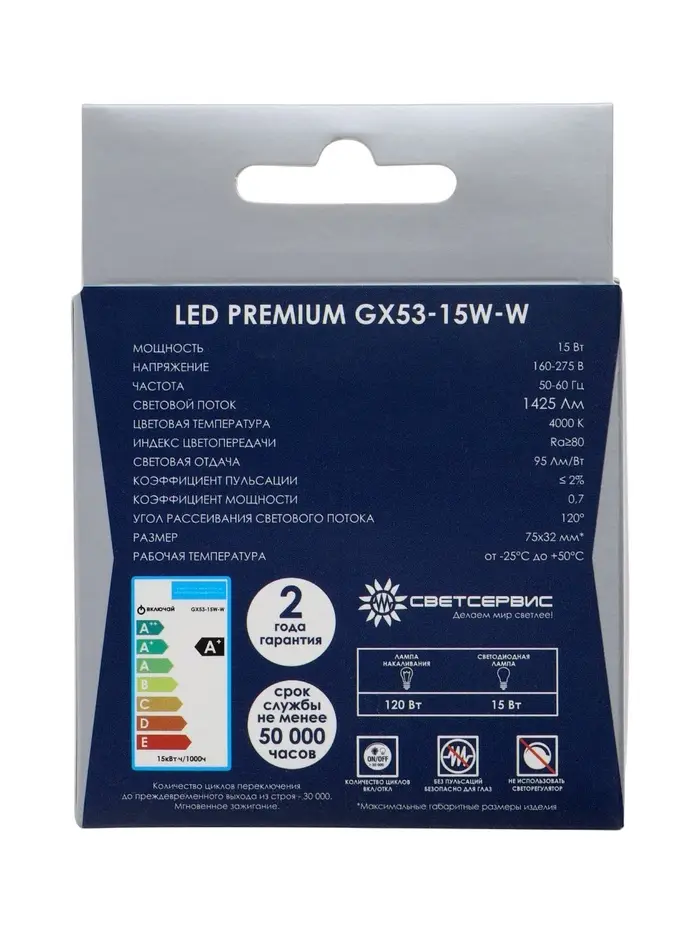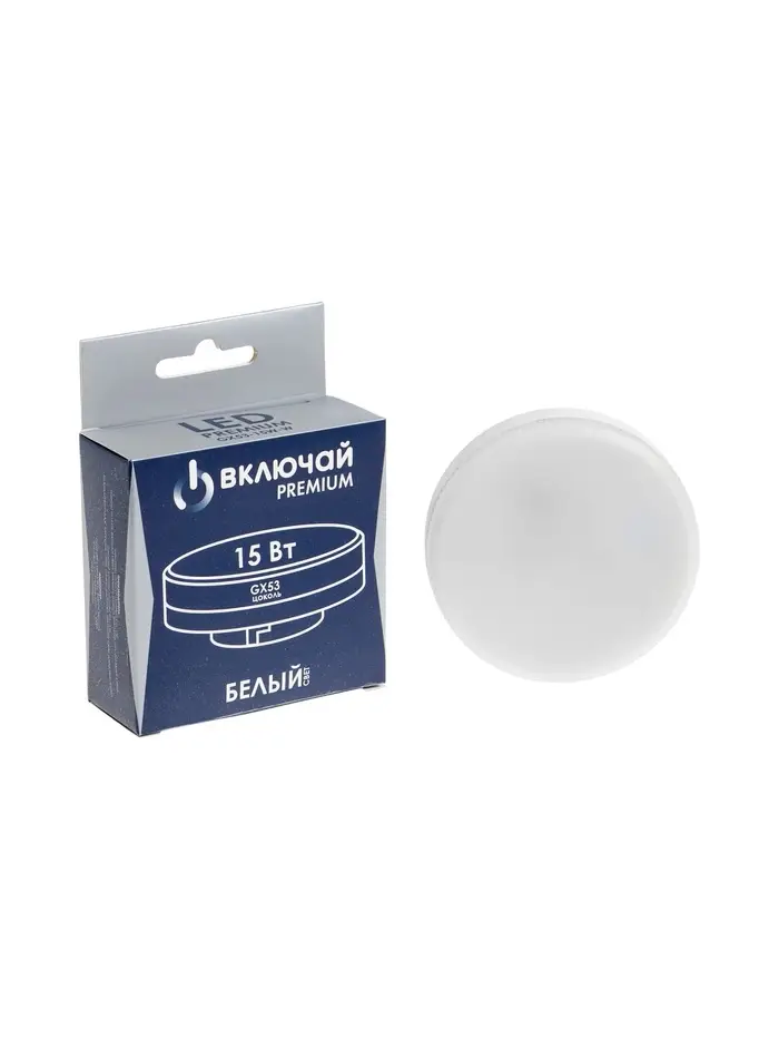 Лампа светодиодная Включай, Tablet, 15 Вт, GX53, 1425 Лм, 4000K, IP20, свечение нейтральное белое, м