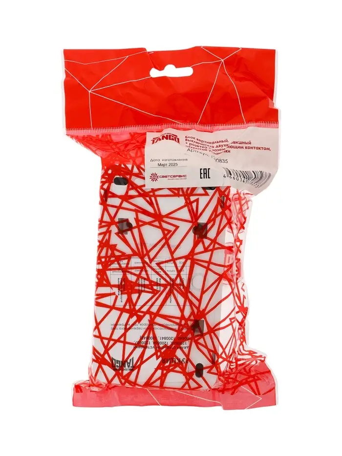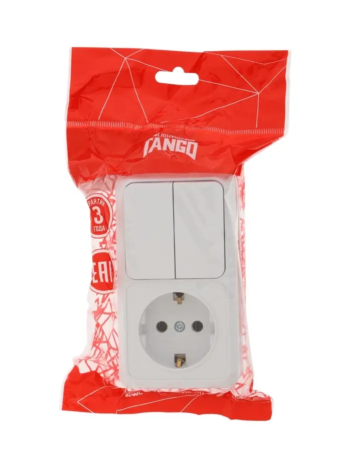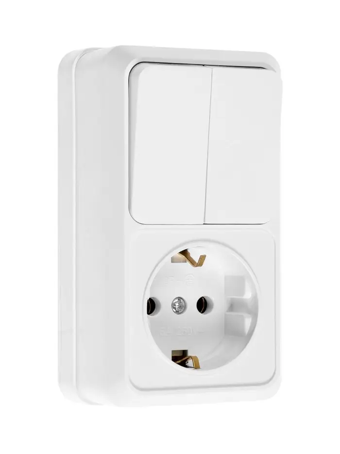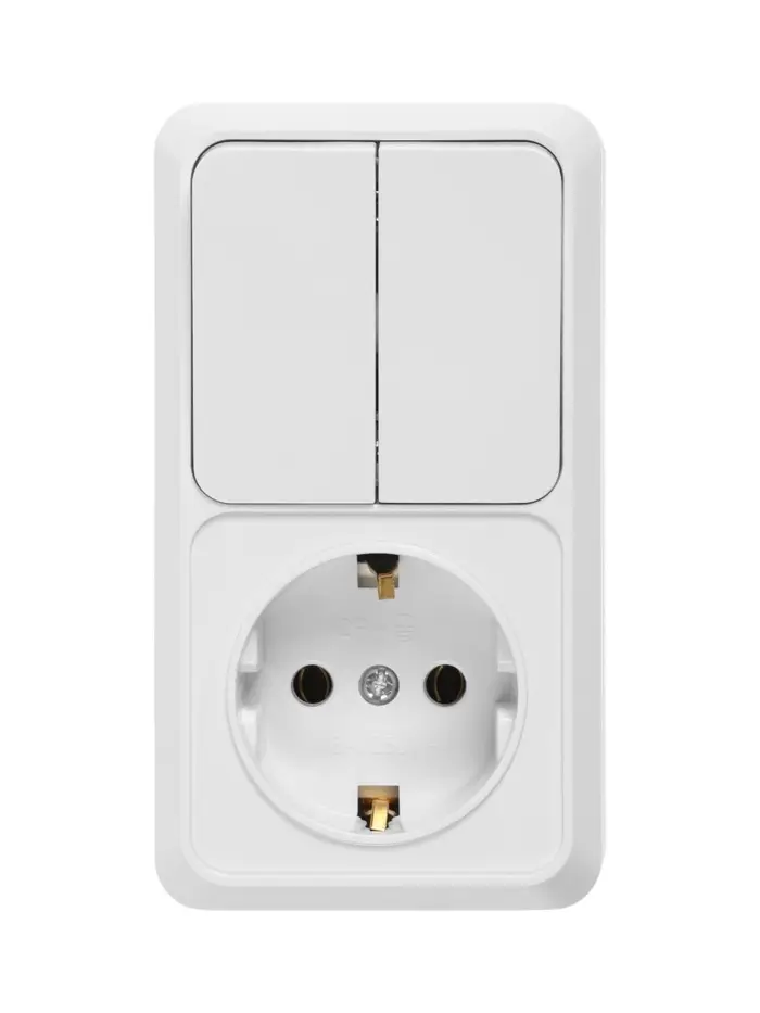 Выключатель с розеткой вернтикальный TANGO, 16 А, 2 клавиши + розетка, IP 20, открытой проводки с за