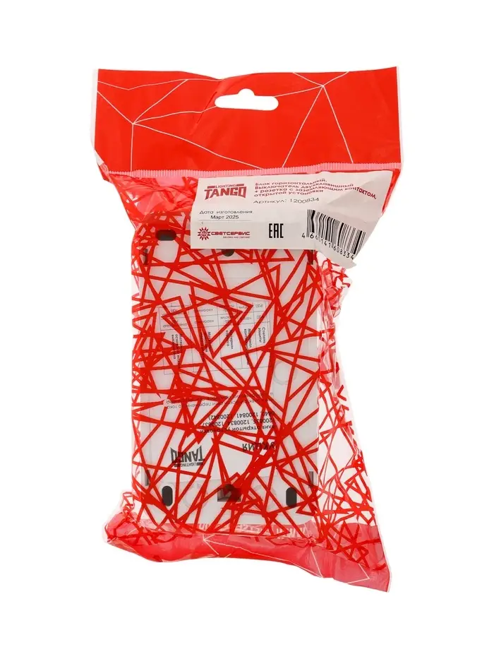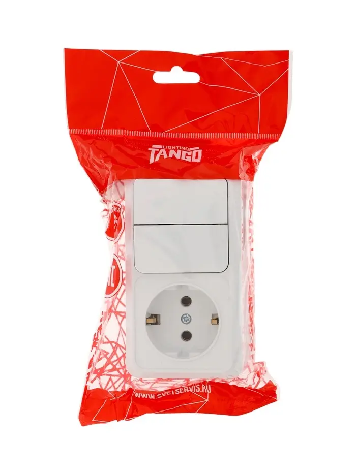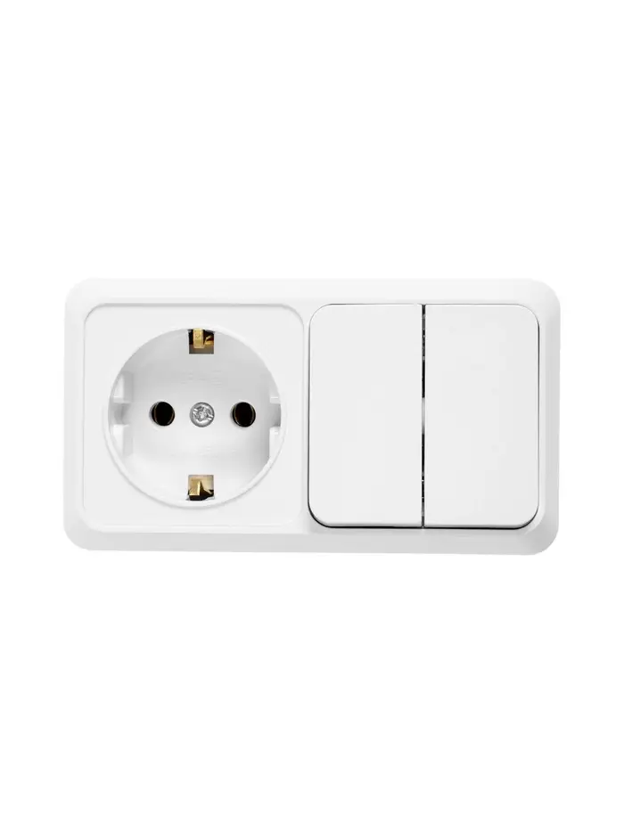 Выключатель с розеткой горизонтальный TANGO, 16 А, 2 клавиши + розетка, IP 20, открытой проводки с з