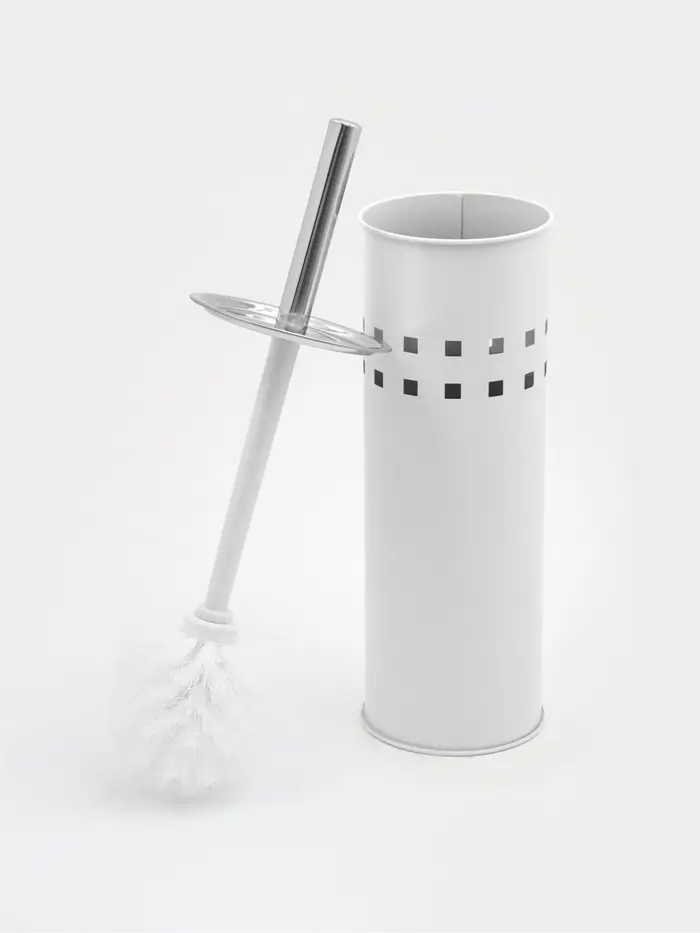 Напольный ёршик для унитаза в цельнометаллическом исполнении. Его конструкция из нержавеющей стали и лаконичная белая подставка делают чистоту и порядок в санузле простой и системной задачей.