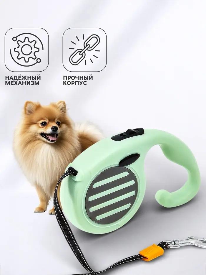 - Плавное торможение и возврат: механизм равномерно сматывает ленту без рывков. Хозяин может быстро укоротить поводок в любой момент — например, при встрече с другими собаками или на проезжей части.
