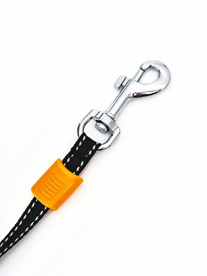 - Надёжная фурнитура: карабин из металла выдерживает нагрузку и не расстёгивается самопроизвольно. Лента прочная, не рвётся от когтей и не истирается о бордюры.