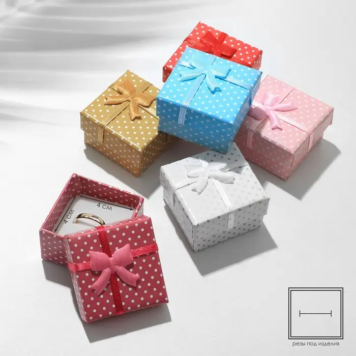Набор подарочных коробочек под кольцо 6шт. "Горошек" с бантом, 4,5*4,5, цвет МИКС (1150931) 109488