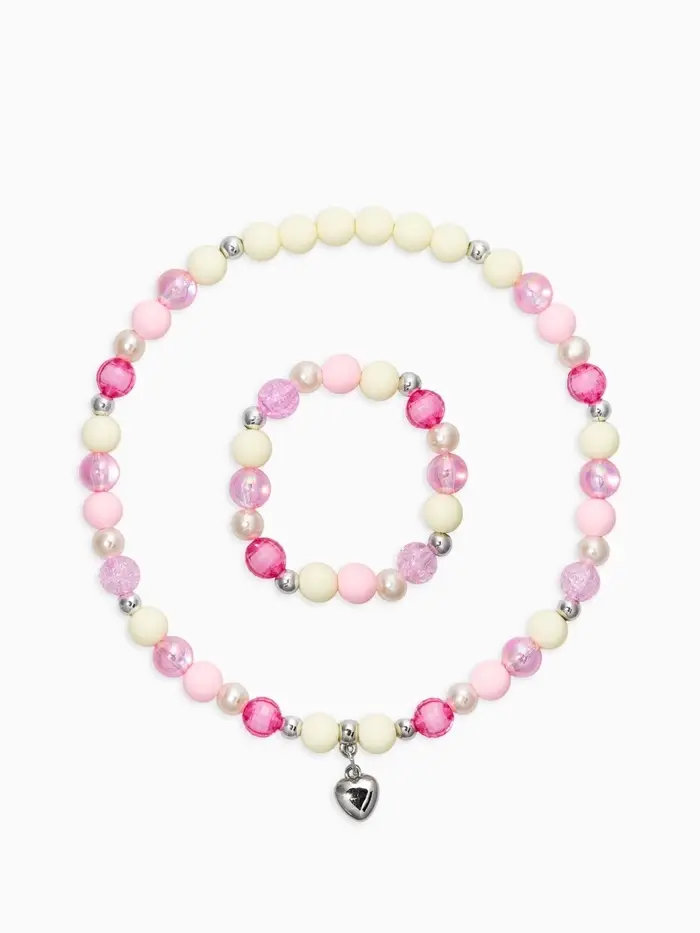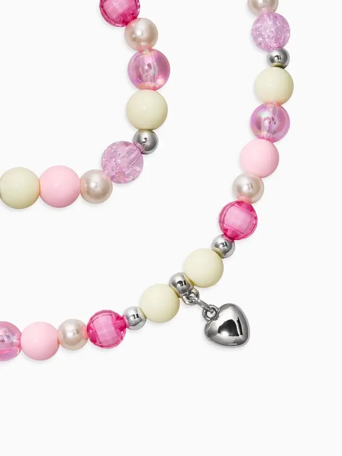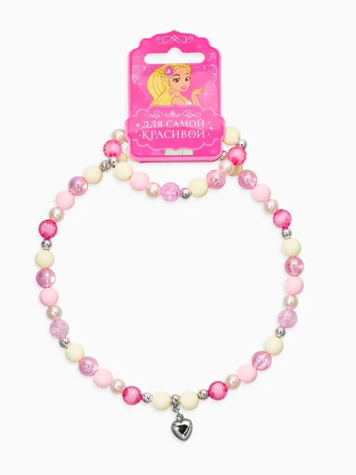Набор детский «Выбражулька» 2 предмета: бусы, браслет d=6 см. сердце, фиолетовый в серебре
