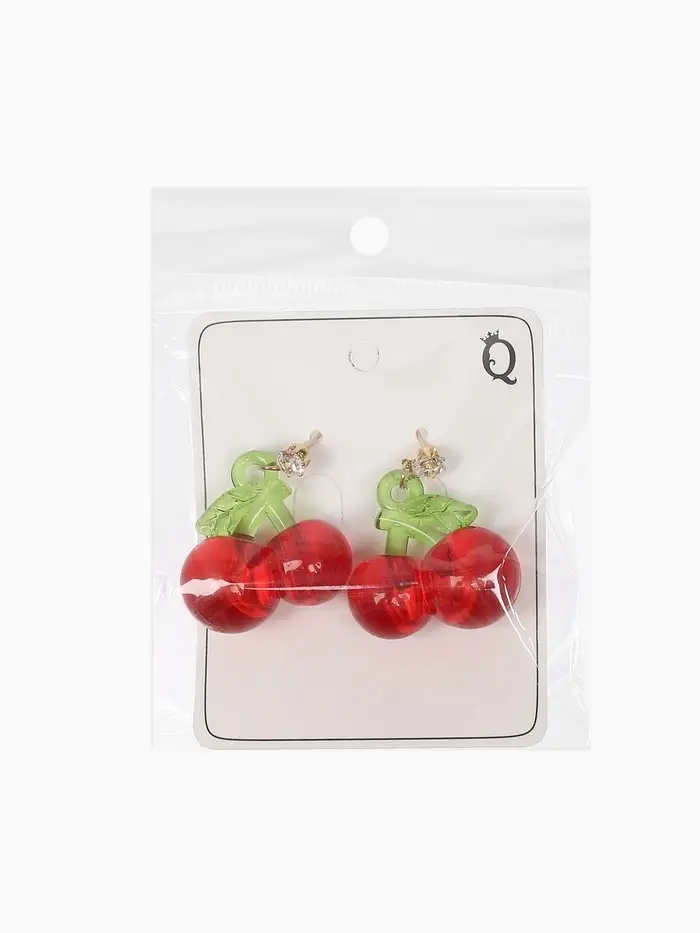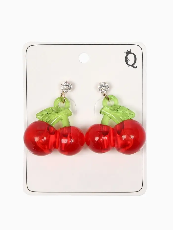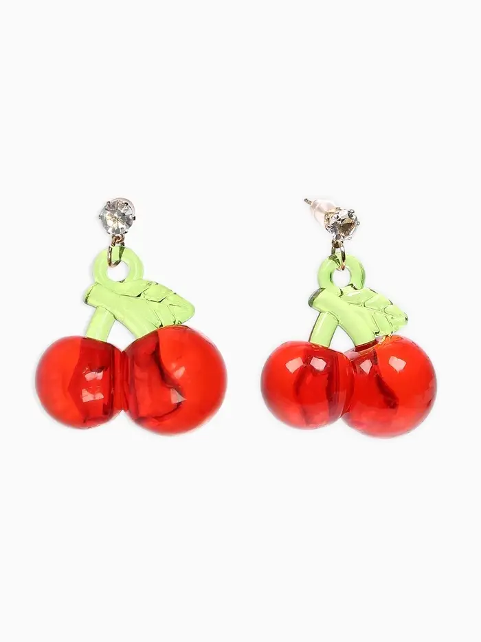 Серьги "Вишня" объемная, цвет красно-зелёный в золоте