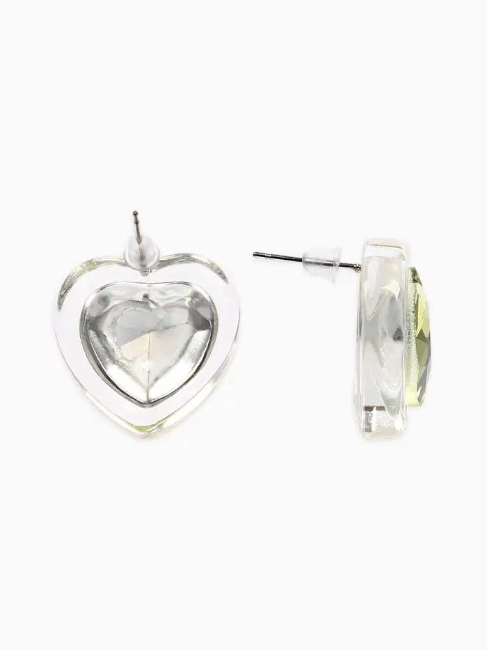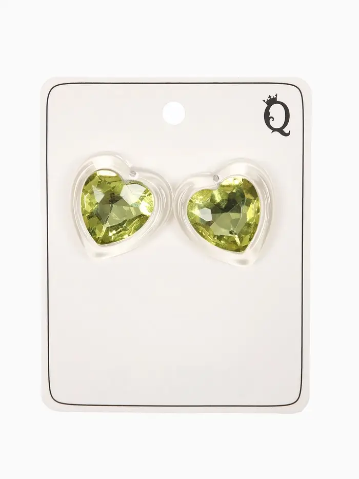 Серьги "Кристалл" сердце, цвет прозрачно-св.зелёный