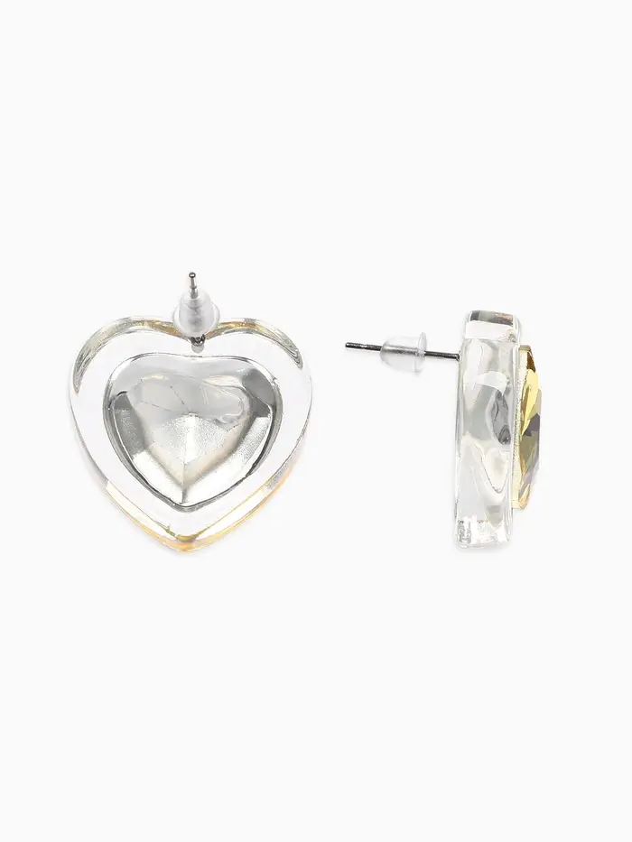 Серьги "Кристалл" сердце, цвет прозрачно-жёлтый бриллиант