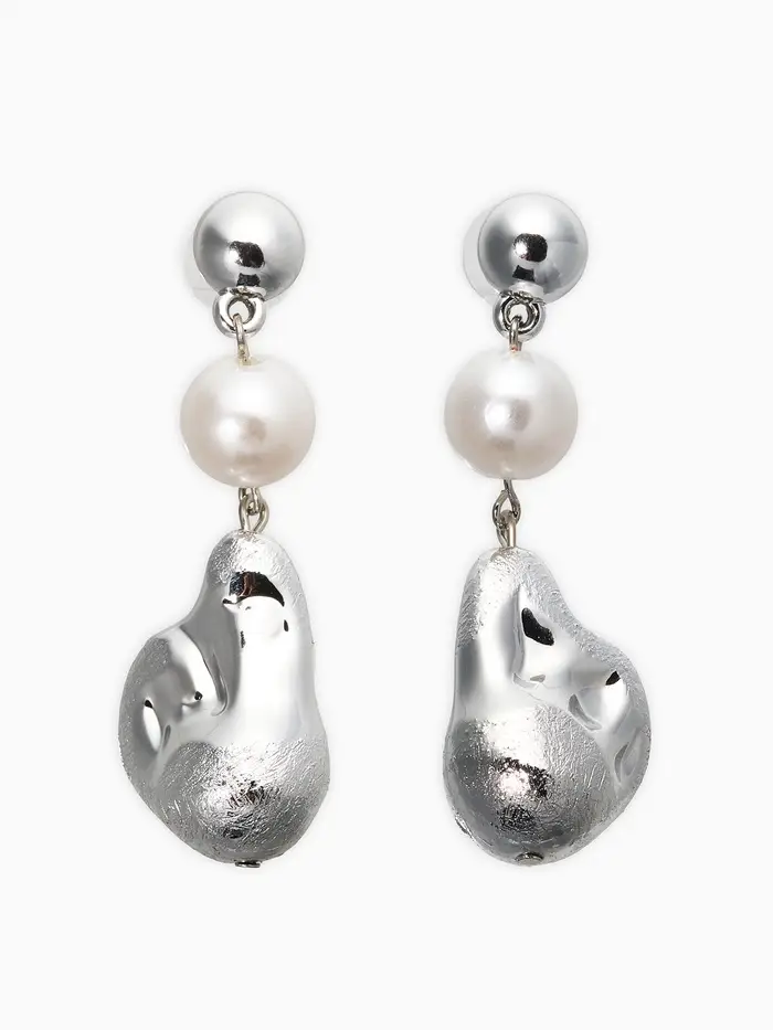Серьги жемчуг "Борокко". цвет белый в серебре