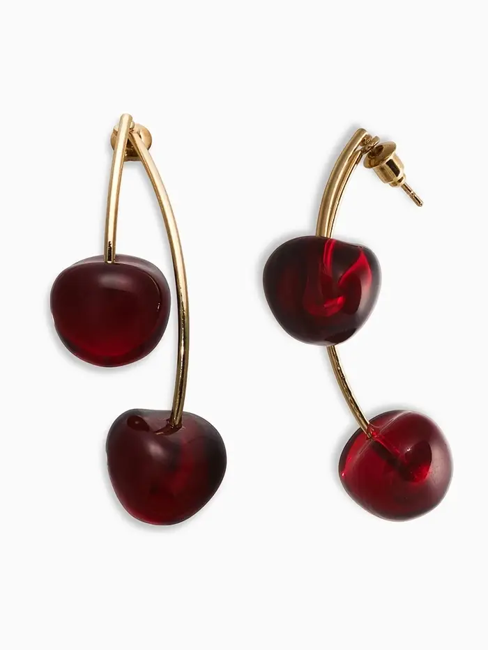 Серьги "Черешня" двойные, цвет бордовый в золоте