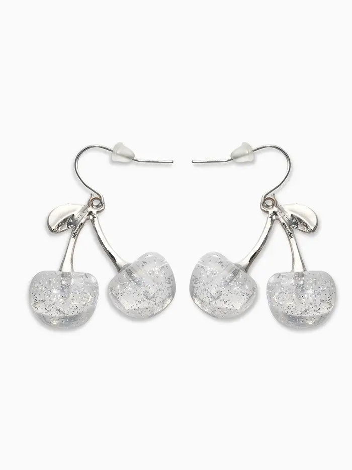 Серьги "Вишенка" блёстка, цвет прозрачный белый в серебре