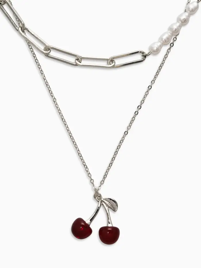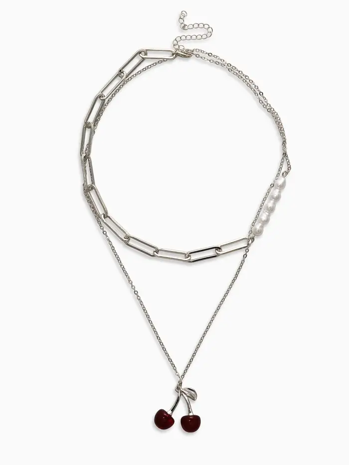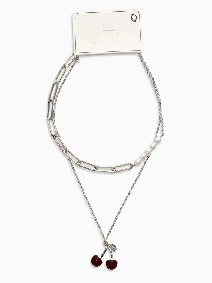 Кулон-цепь 2 яруса "Вишня", цвет бордовый в серебре 40+50+удл