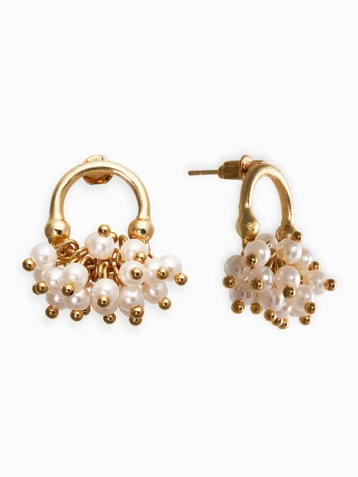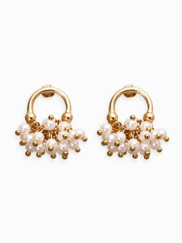 Серьги с жемчугом «Бусина» двойной круг, цвет золото