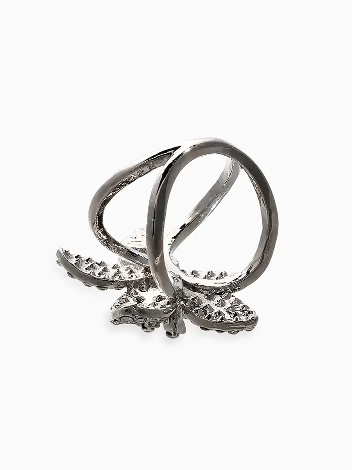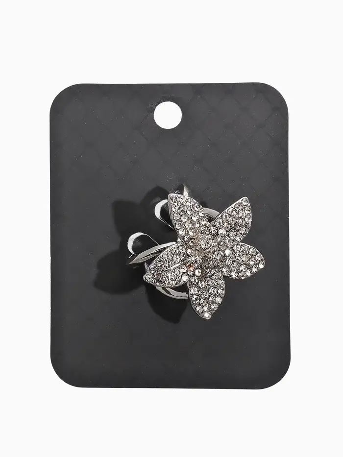 Кольцо для платка «Цветок мака», чёрное в серебре