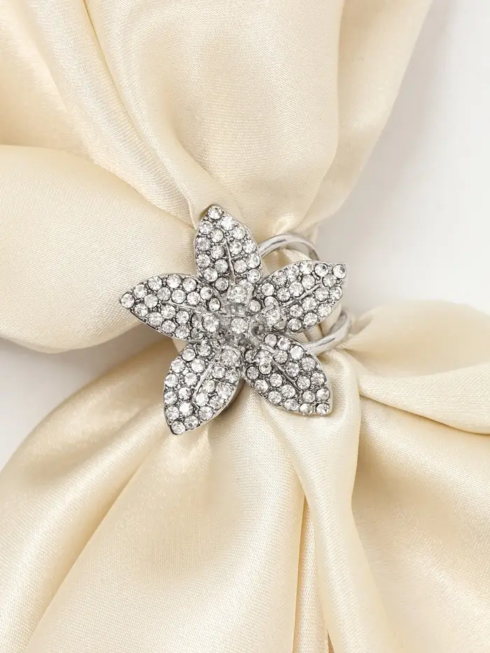 Кольцо для платка «Цветы Ажур», белое в серебре