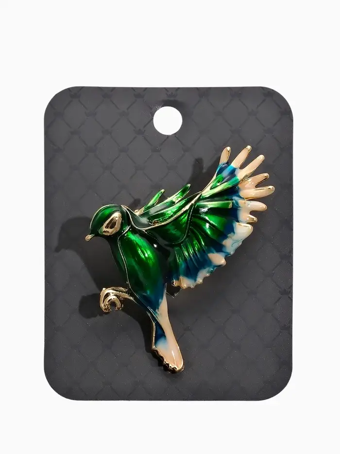Брошь "Птичка" экзотическая, цвет зелёно-голубой в золоте