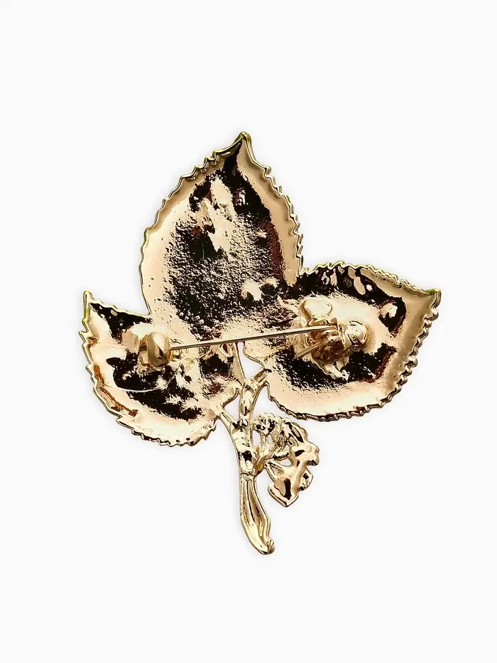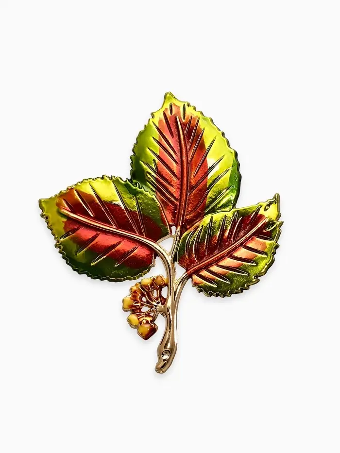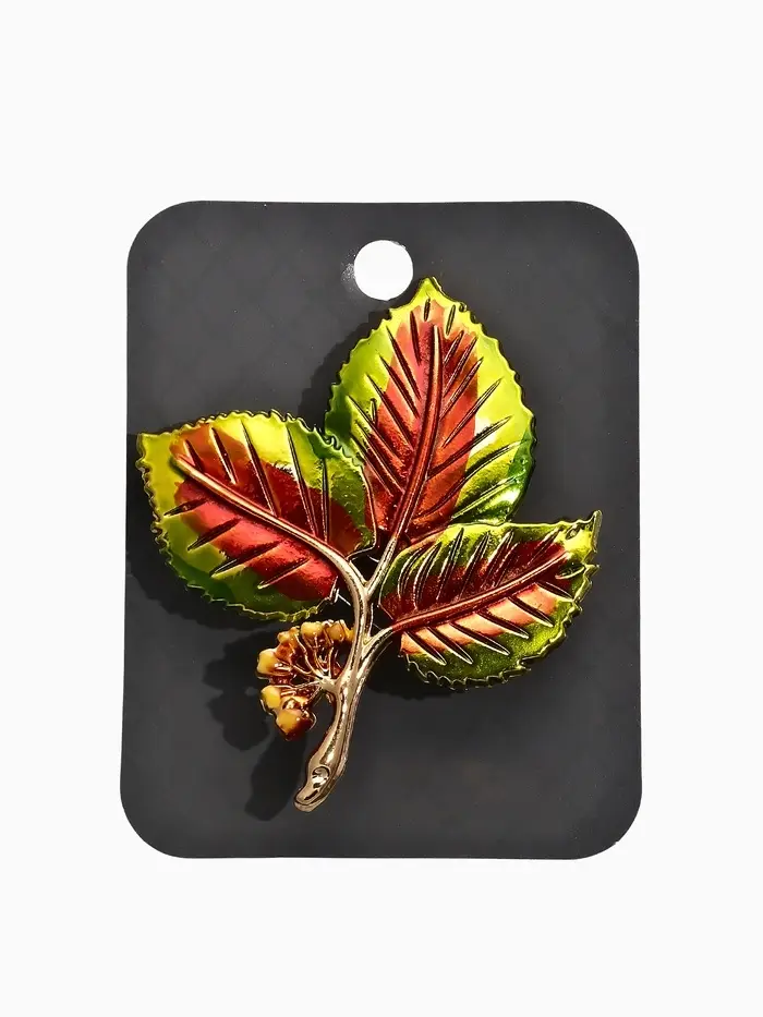 Брошь "Листья Ясеня", цвет зелёно-коричневый в золоте