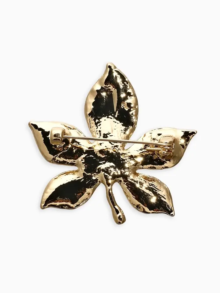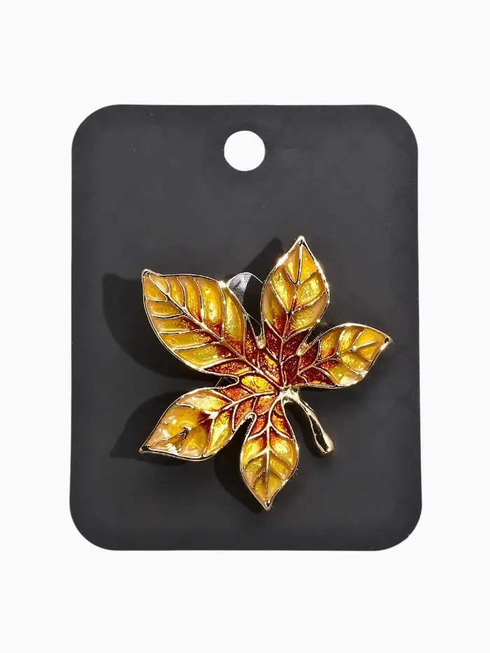 Брошь "Лист Клёна" прозрачная эмаль, цвет жёлто-коричневый в золоте