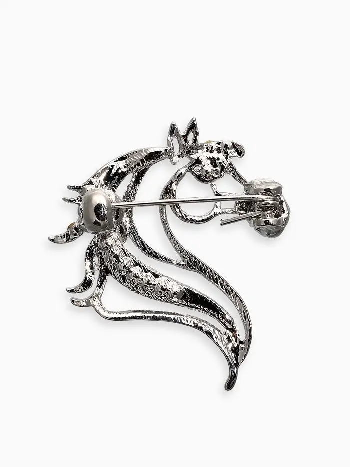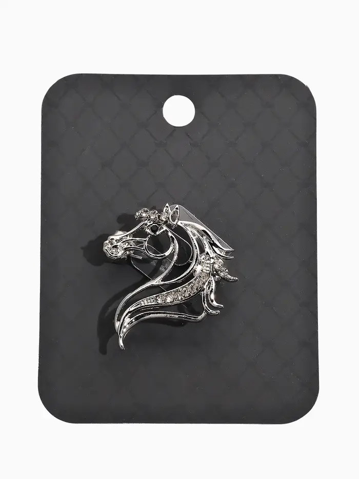 Брошь "Лошадь" изящная, цвет белый в серебре