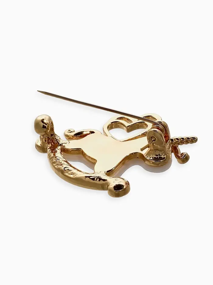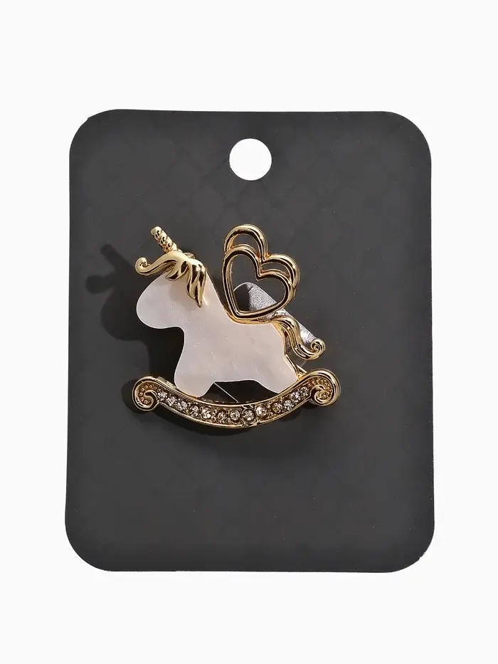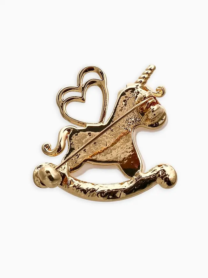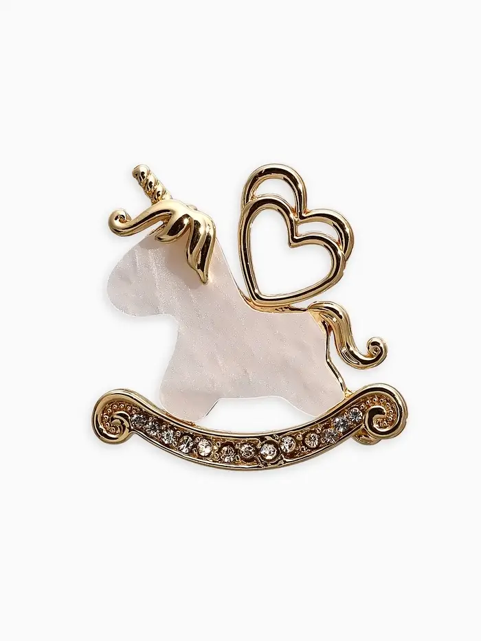 Брошь "Лошадка-Качалка, единорог, цвет белый в золоте